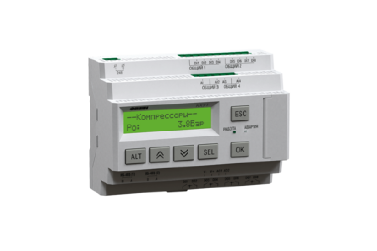 ПростотаКонтроллер параметрический, не требующий написания программы. Настройка с лицевой панели или с помощью ПК. Сохранение готовых конфигураций на ПК и тиражирование их в другие приборы КХУ1.УниверсальностьНастройка конфигурации для дискретных входов и выходов. С модулем расширения возможно задействовать до 16 входных или выходных сигналов управления.ДиспетчеризацияДва интерфейса RS-485 на борту контроллера и открытая карта регистров позволяют встроить прибор в систему удаленного мониторинга и диспетчеризации.Защита оборудованияКХУ1 осуществляет контроль низкого и высокого давления, состояния цепей безопасности оборудования. Аварийные события фиксируются в журнале и передаются по сети RS-485.ЭкономичностьПоддержка управления преобразователями частоты.