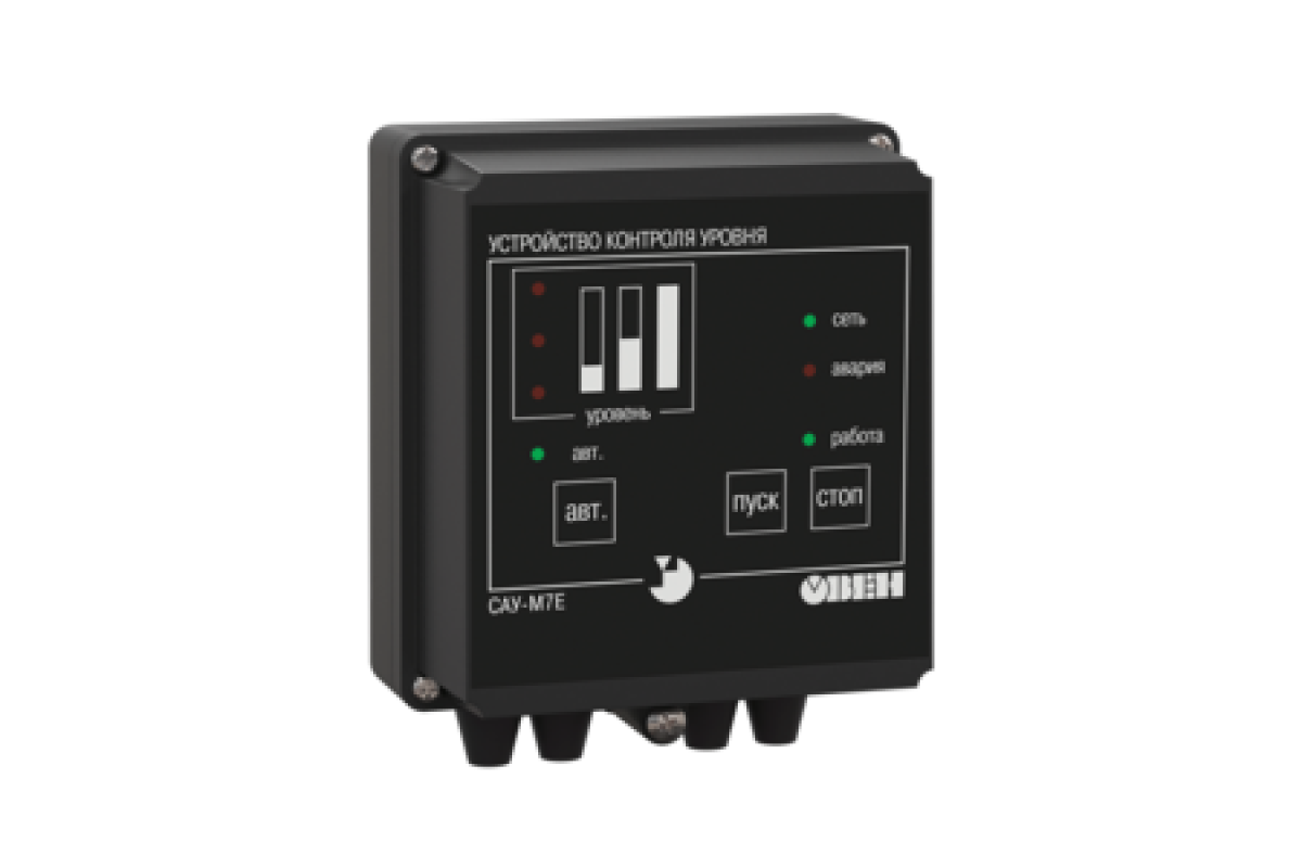 Прибор САУ-М7Е обеспечивает контроль уровня жидких или сыпучих материалов в резервуаре. Может управлять заполнением, осушением или поддержанием уровня в отопительных котлах, водонапорных башнях, зернохранилищах и т.п.